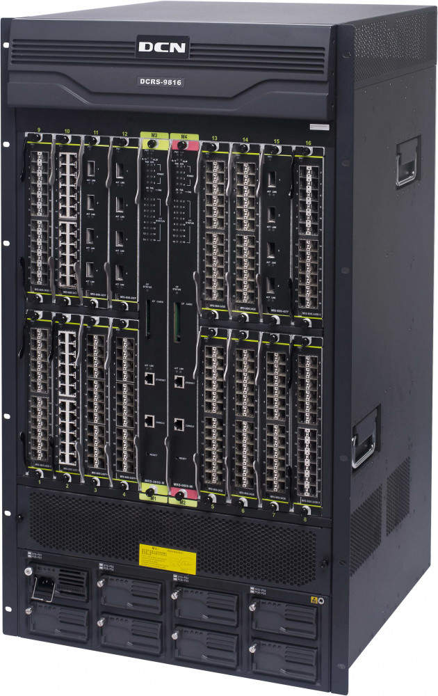 Yunke China Information DCRS-9800 Series adalah Switch chassis berkecepatan kabel dan berkinerja tinggi. DCRS-9816 adalah switch chassis dengan 18 slot. DCRS-9816 memiliki 2 slot manajemen dan 16 slot bisnis. Dengan catu daya redundan, kipas dan modul manajemen, Digital China DCRS-9800 Series memastikan pengoperasian yang berkelanjutan dan sistem yang sepenuhnya redundan.